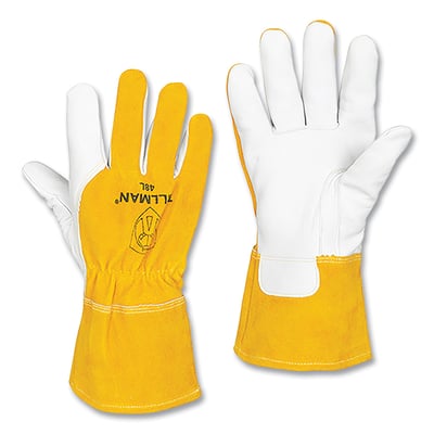Loading product details...MIG Welding Gloves, 48, Top Gr Goatskin Palm/Split CH BOH/Cuff, XL, Bourbon Brn/Pearl, 3-1/2 in Shirred Cuff