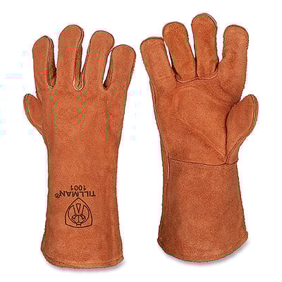 Loading product details...Stick Welding Gloves, 1001, Shoulder Split Cowhide Palm/BOH/Cuff, Lg, Russet, 14 in L Cuff