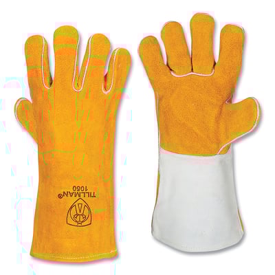 Loading product details...Stick Welding Gloves, 1012, Split Cowhide Palm/BOH/Cuff, Lg, Russet Brown, 14 in L Cuff